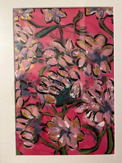 This painting is a unique mix if messy, soft, feminine, chaotic, loud and colorful.